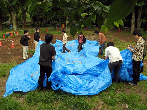 ある晴れた日に歌舞伎町で活躍したブルーシート