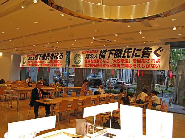 真横にはずっとこの横断幕が掛けられてて、高齢の男性が1人、折り畳み椅子に腰かけてました。