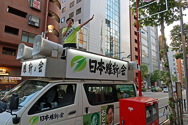 夕方5時頃、新宿御苑前に日本維新の会・音喜多駿がいました。