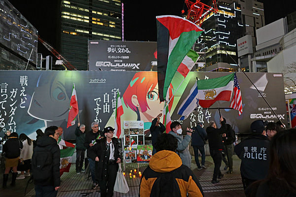 暴力的ではありませんでしたが、空中でパレスティナ旗と攻防してました。