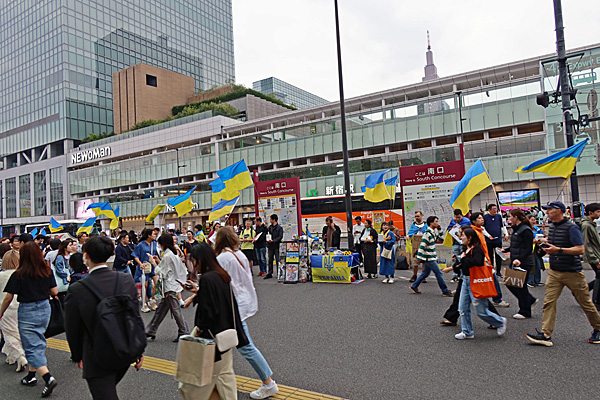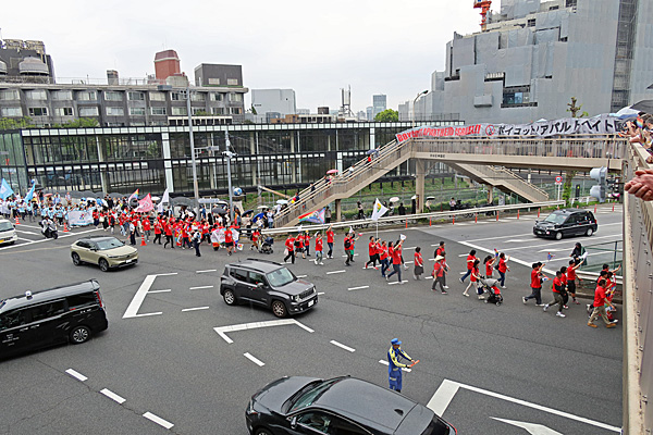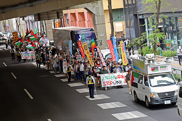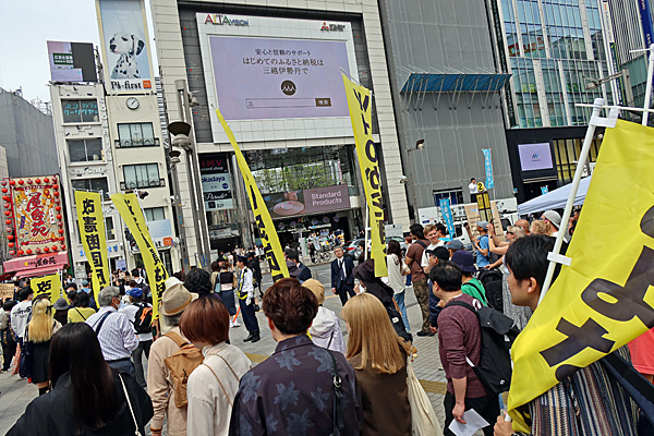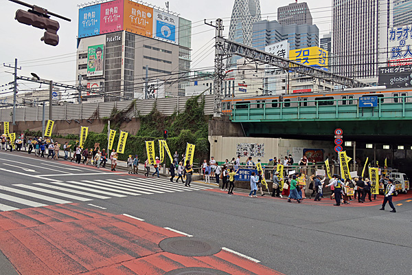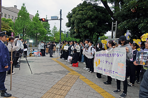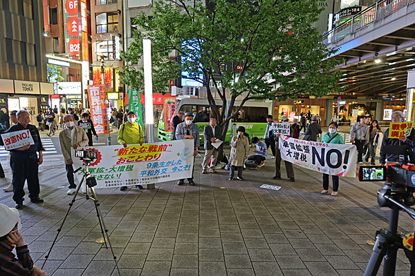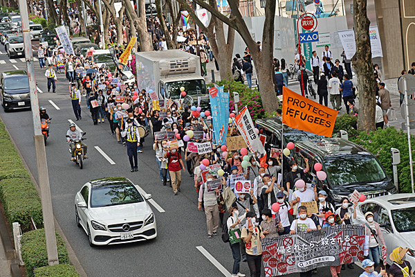 「反戦無罪」と「地域ファシズム反対」を訴えるデモ